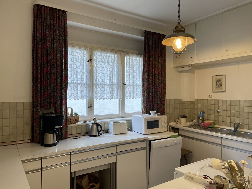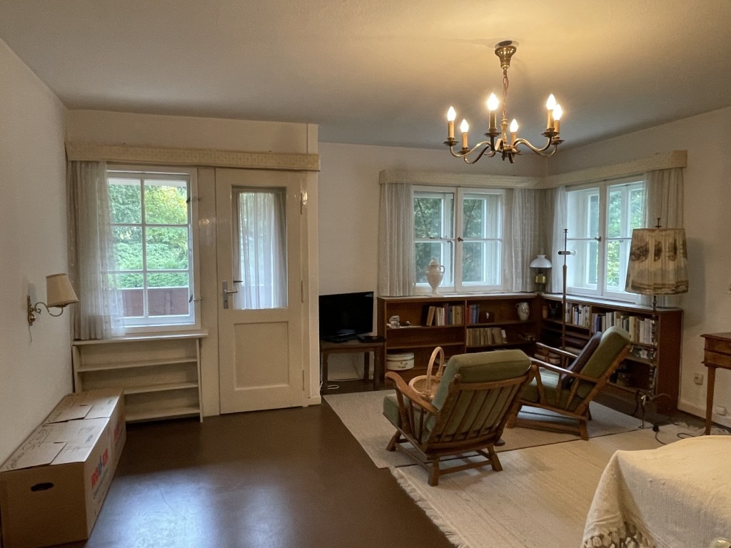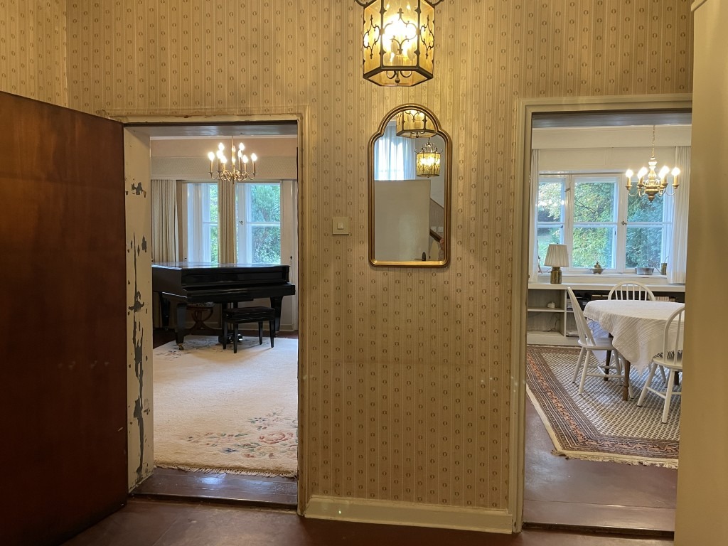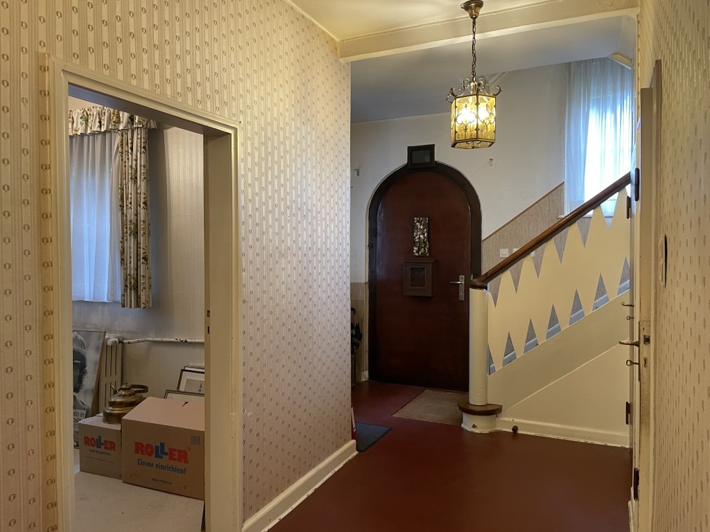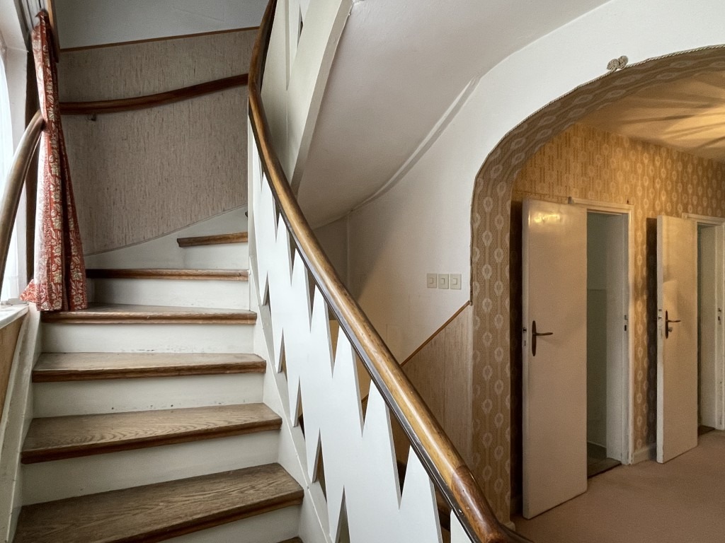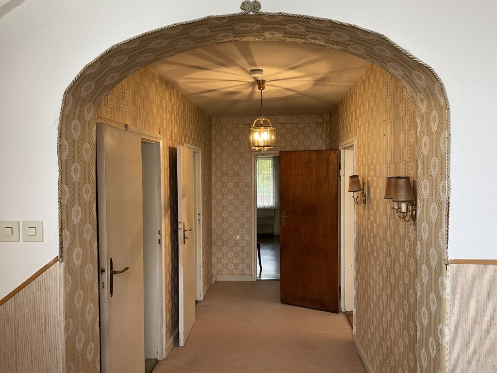 Zahlreiche Details zeugen von dem besonderen Baustil der damaligen Zeit: maßgeschreinerte, dezente Schränke und Einbauten inklusive einer Durchreiche zwischen Küche und Esszimmer, eine angenehme Deckenhöhe, ein stilvolles, wohnliches Treppenhaus, das alle drei Etagen miteinander verbindet. Insgesamt überzeugt das Haus mit den zahlreichen, teils großzügigen Räumlichkeiten, die den Eigentümern für die flexible Nutzung zur Verfügung stehen.