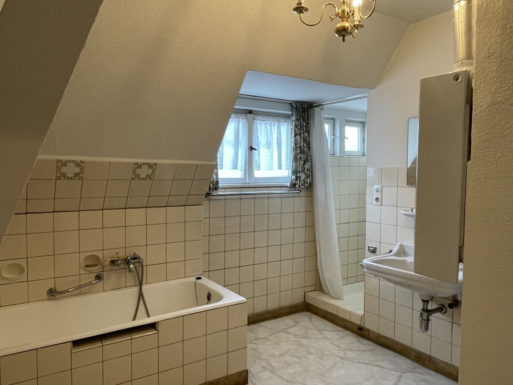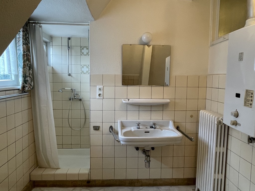 Der klassische Original-Zustand des charaktervollen Hauses wurde bis in die Details weitgehend erhalten und nicht durch zahlreiche Umbauten entfremdet. Daher bedarf es natürlich einer grundlegenden, behutsamen Sanierung, um heutigen Wohnansprüchen gerecht zu werden. Augenscheinlich wurde die letzte, umfangreichere Modernisierung zwischen den Jahren 1960 und 1970 durchgeführt. Die Wasserrohre im Erdgeschoss und im Keller wurden bereits erneuert, ebenso die Gas-Zentralheizung im Jahr 2003. Das gesamte Gebäude hat sich seine Authentizität bewahrt und bietet eine perfekte Basis für die Überführung in die Modernität in einem charmant-historisch geprägten Umfeld.