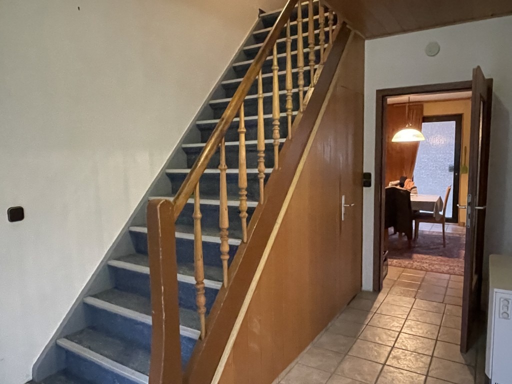 Die mittig des Hauses gelegene Eingangsdiele mit Treppe zum oberen Geschoss führt rechts und linksseitig direkt in die beiden Wohnräume des Erdgeschosses sowie geradeaus in die große Wohnküche mit direktem Ausgang auf den Hof und in den Garten. Das Badezimmer mit moderner Flachdusche und Außenfenster grenzt direkt an die Küche. Im Obergeschoss stehen drei weitere, gut nutzbare Zimmer mit jeweils ca. 15 m², ein Durchgangszimmer sowie ein Tageslicht-Bad mit vorgelagertem Zwischenraum zur Verfügung. Eine feste Treppe führt vom Flur hinauf zum gut nutzbaren, noch nicht ausgebauten Dachboden.