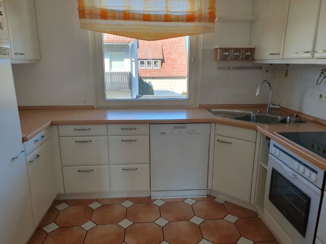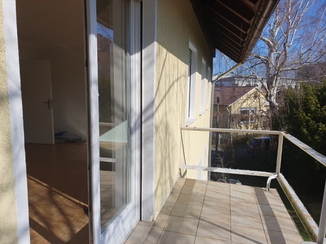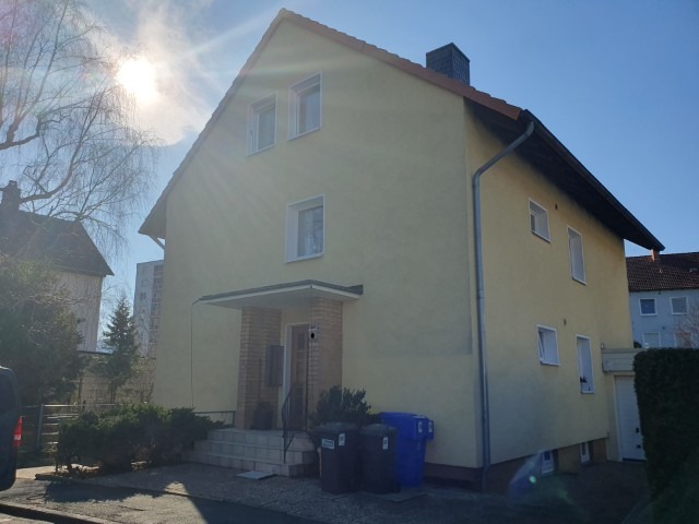 Sehr helles, gepflegtes & ruhiges Zwei-Parteienhaus – 2 Tageslicht-Bäder (OG mit Badewanne, DG mit Dusche) – geräumiges, sonnenverwöhntes Wohnzimmer mit Parkettboden – Südbalkon – stilvolle, geschwungene Holztreppe (Einzelstück) – Einbauküche inkl. E-Geräten;