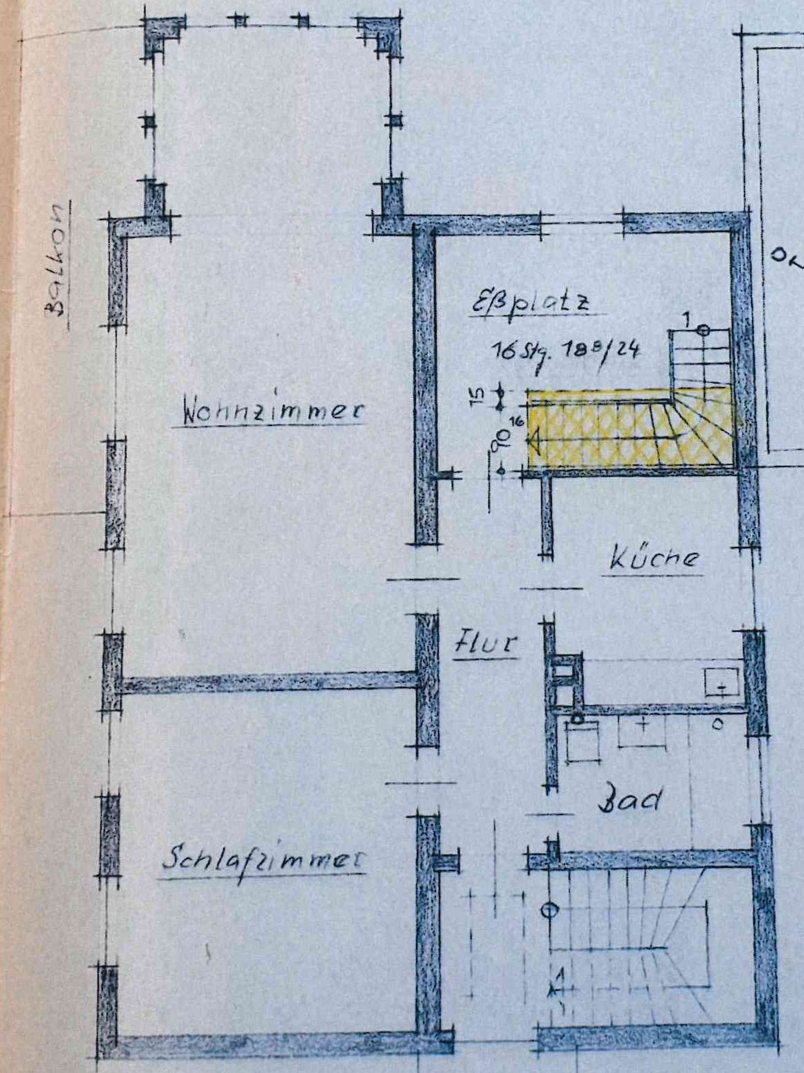 ca. 132 m² – 5,5 Zimmer (hiervon 1 Durchgangszimmer) – 2 Bäder – Küche – 2 Flure + kleine Galerie – Südbalkon; zzgl. kleiner Kellerraum, Waschmaschinenkeller